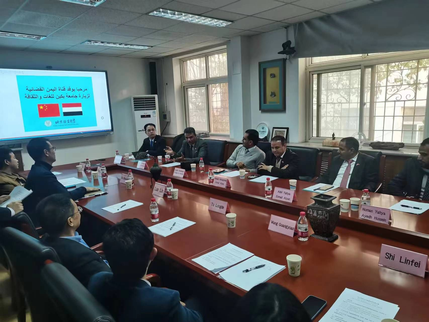 也门电视台电视部主任兼节目部主任哈立德·阿勒扬对我校的热情接待表示衷心感谢,他介绍了也门的历史文化以及他此次中国之行的感悟,并赞扬中也两国的传统友谊,他指出语言是不同文明之间沟通交流的桥梁,希望有更多的中也两国学生学习对方的语言与文化。也门电视台新闻部主任陶菲格·沙尔阿比表示也门电视台期待与我校在内中国高校在传媒领域开展合作。