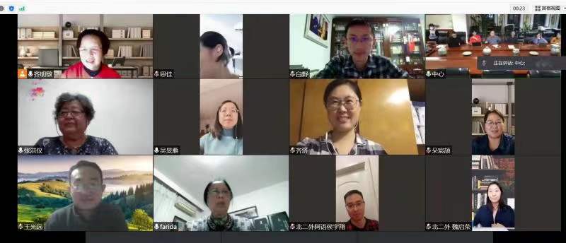 本次会议采用线上线下结合的形式,由我中心罗林教授主持。资深翻译专家王复译审、齐明敏教授、张洪仪教授和其他来自外文局、北京外国语大学、北京第二外国语学院、天津外国语大学、吉林外国语大学及我校中东学院的10余名项目译者出席了会议。参与项目工作的我校国别和区域研究院博士研究生列席会议。